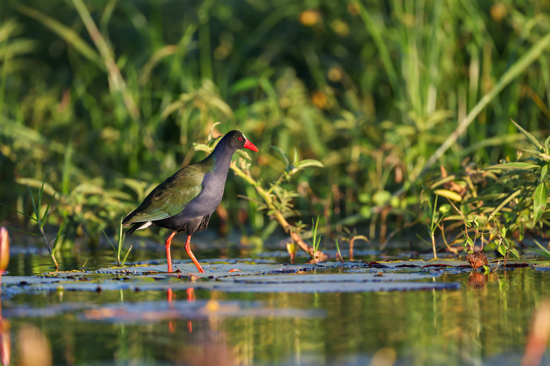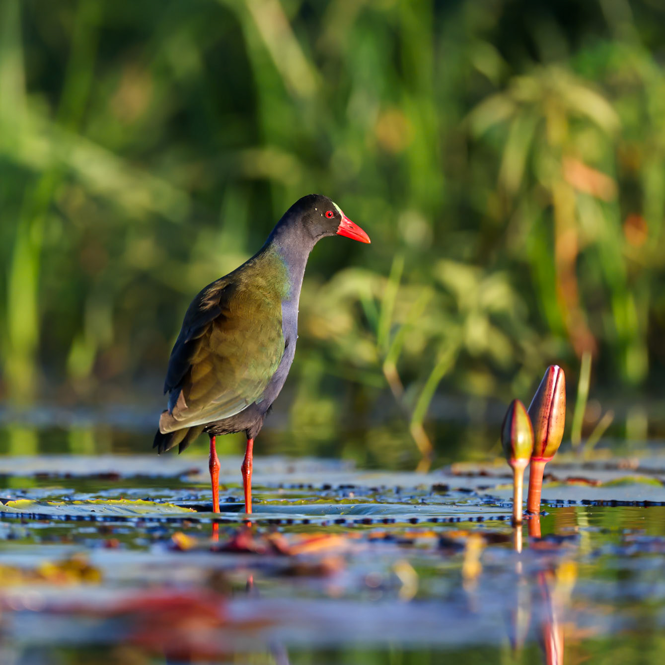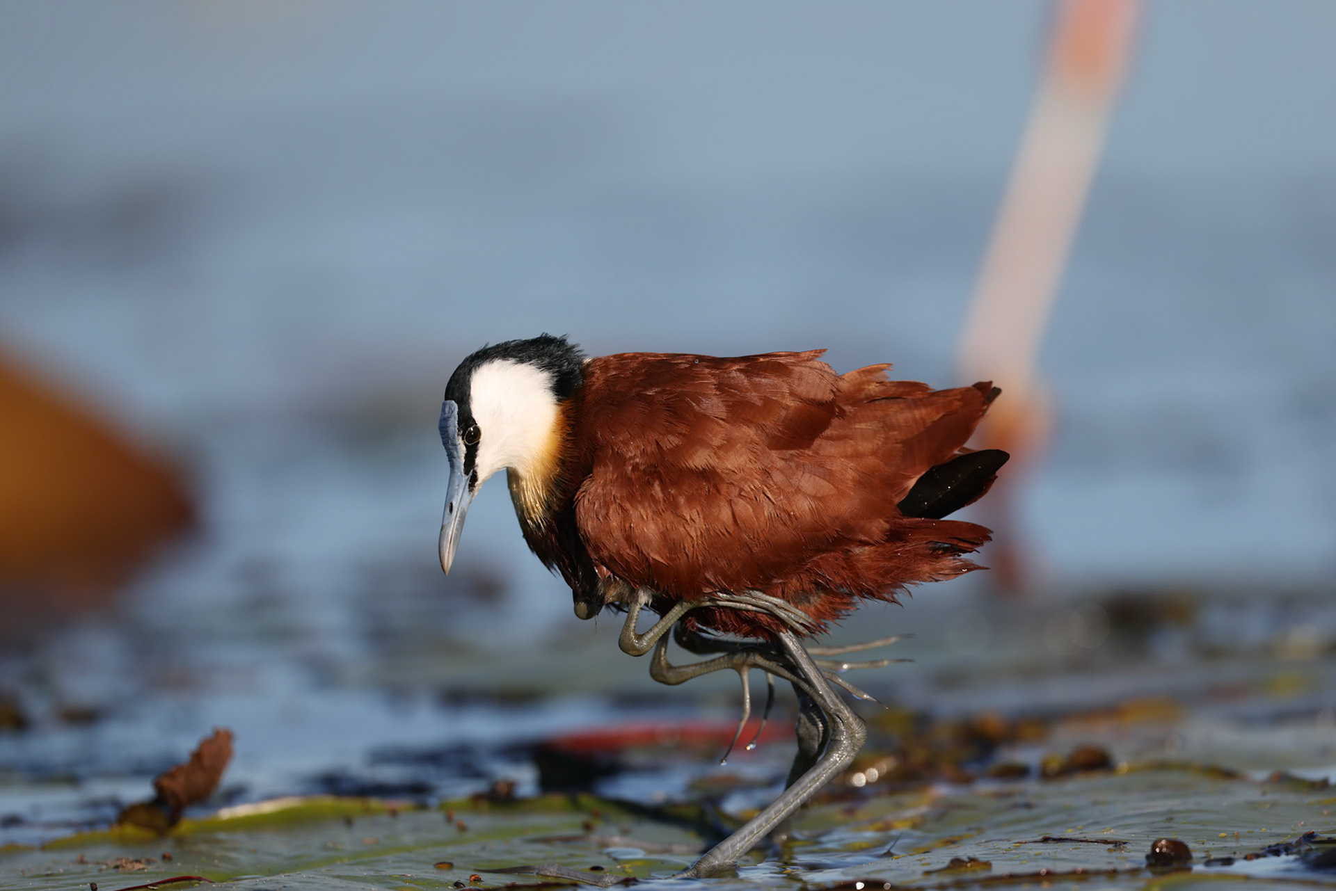 The African Jacana chicks were so fun to watch as they ran across the water lilies and hid under the wings of the Male Jacana's.