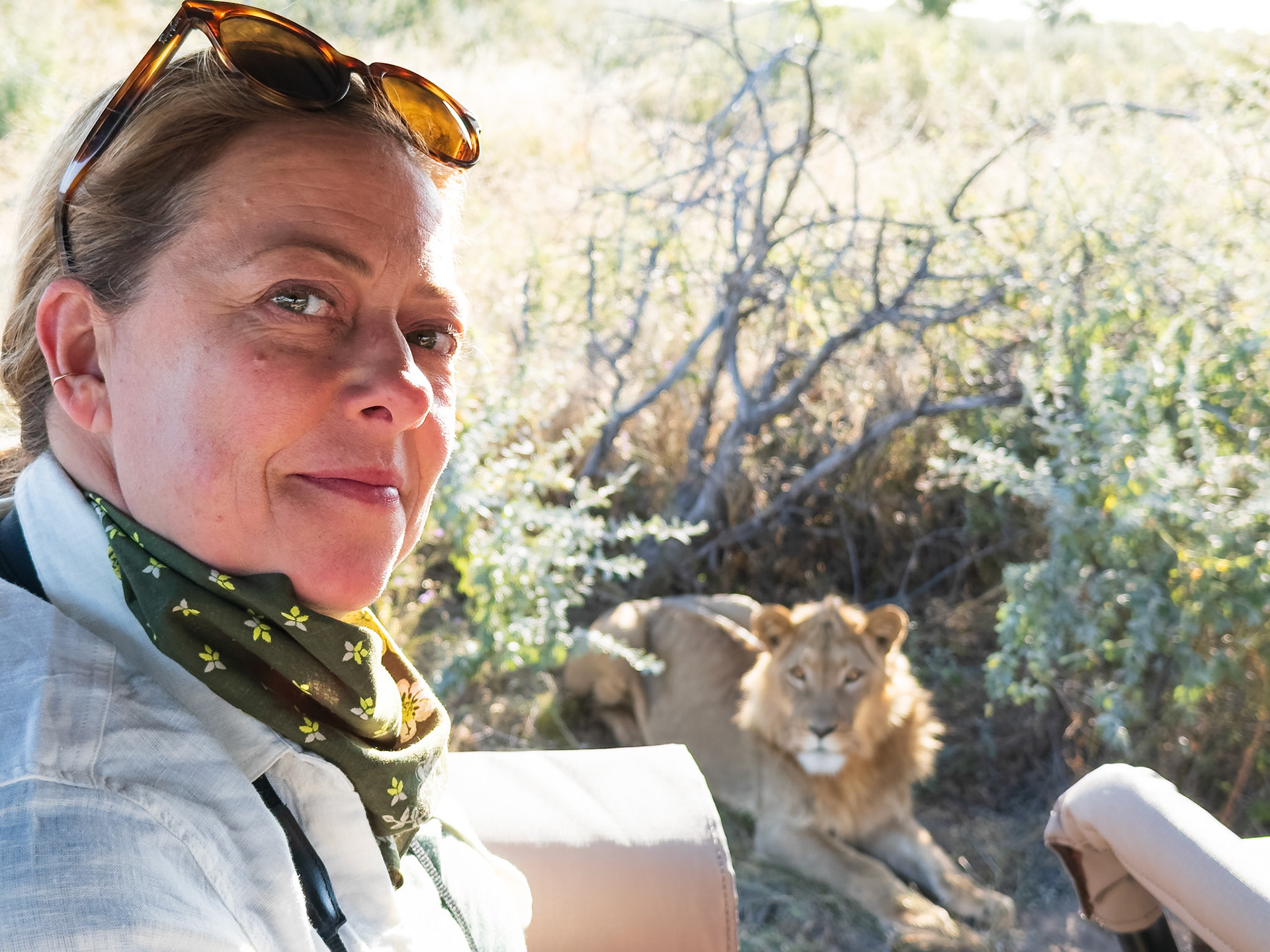 Our guides found a pair of lions at dusk and the sound of this lion calling out to the other after waking up from his nap was bone shaking. The power and awe of Lions is so much greater when you have very little separating you from them and you know how vulnerable you are.