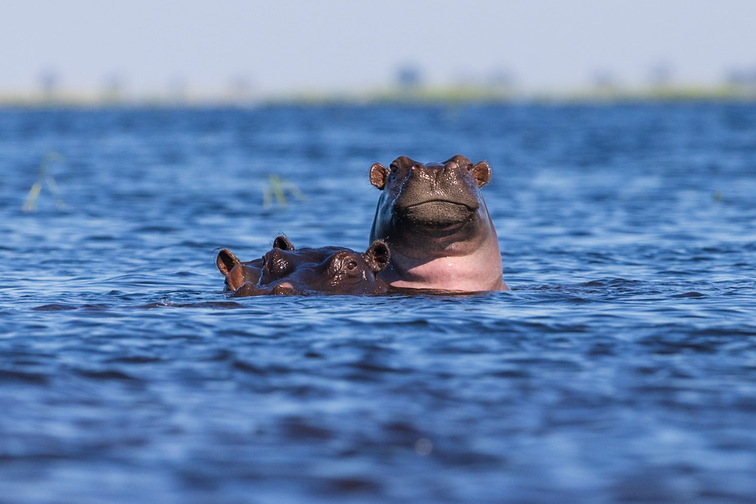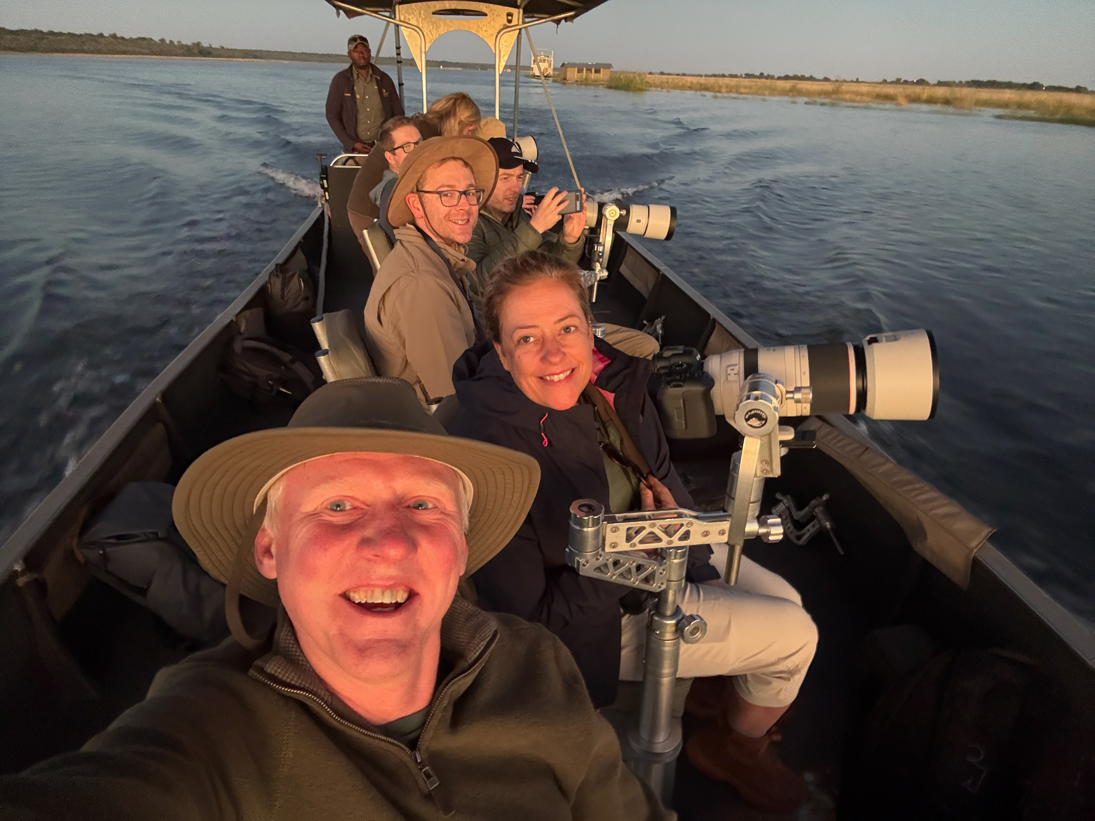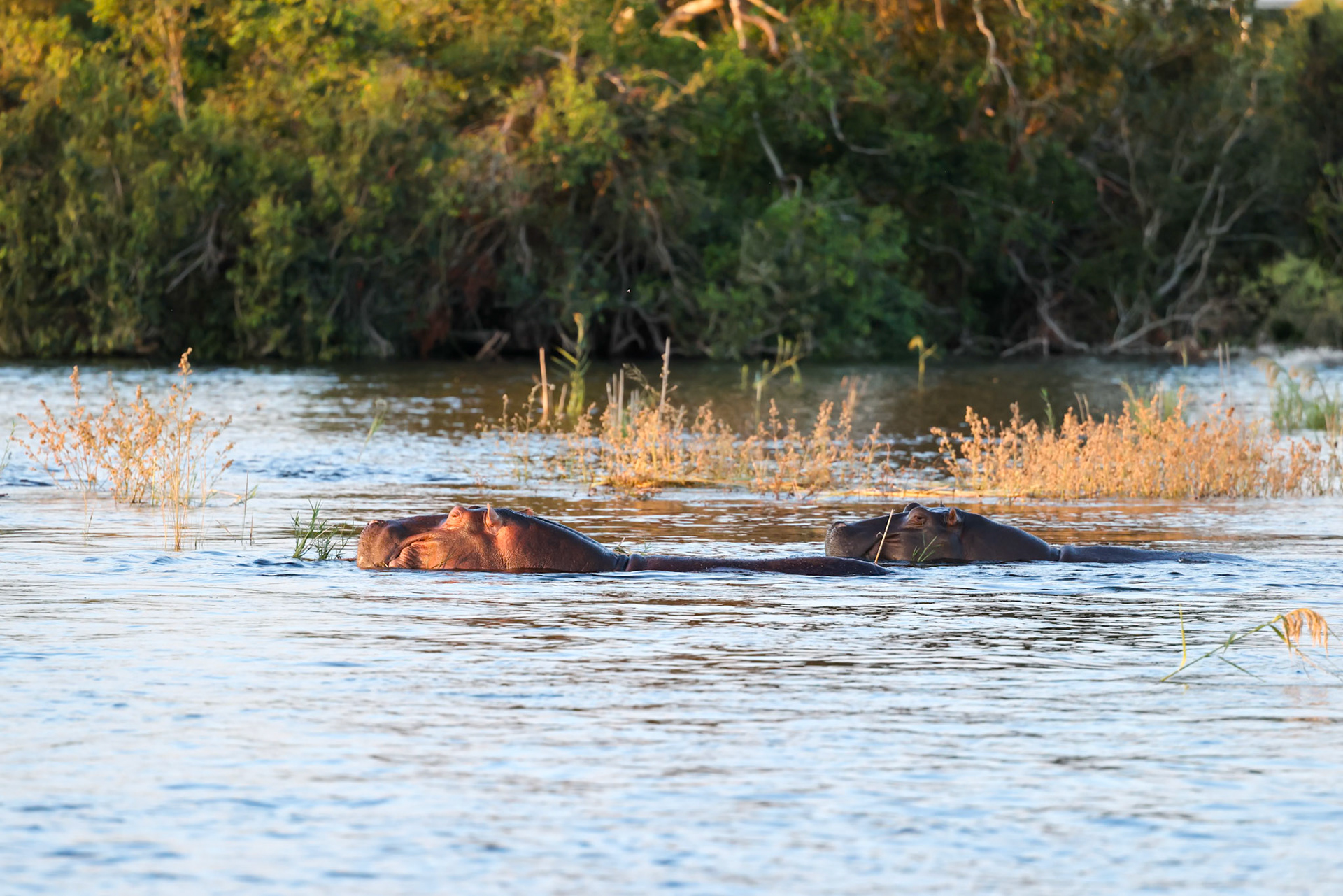 The mist of Victoria Falls in the background with our first Hippo sightings of the trip